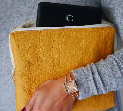 Protégez intégralement votre tablette 10 pouces avec cette housse sobre et élégante en fibre végétale d'ananas PINATEX doublée de coton.