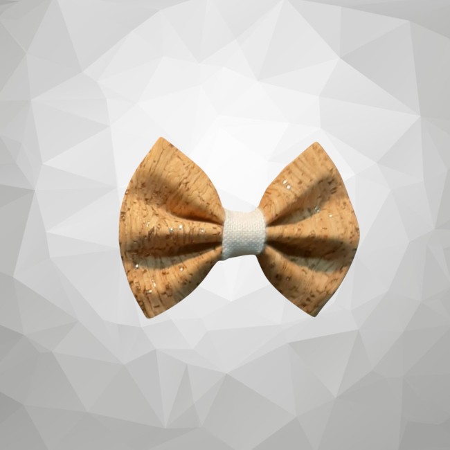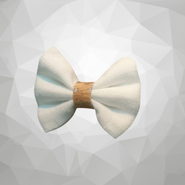 Grande barrette Nœud Papillon 100 % Liège avec bague chanvre blanc